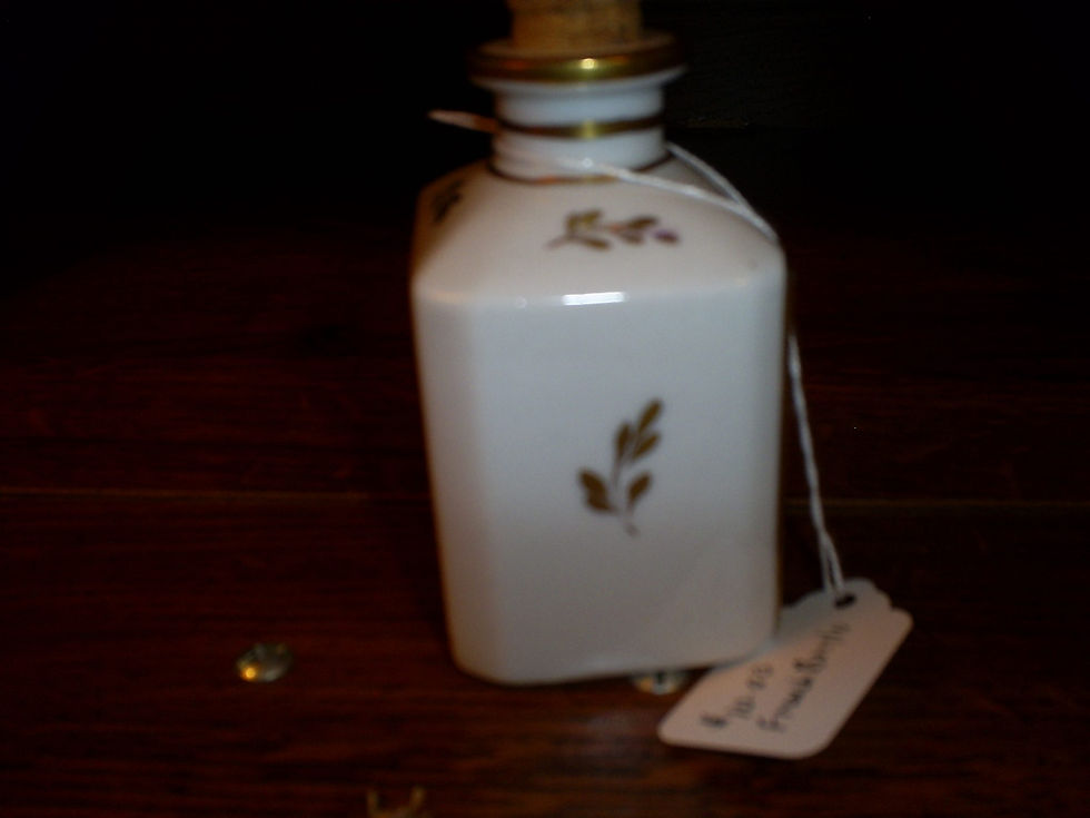 Old vintage French Bottle with a cork Top with Blue Flower oon the Front